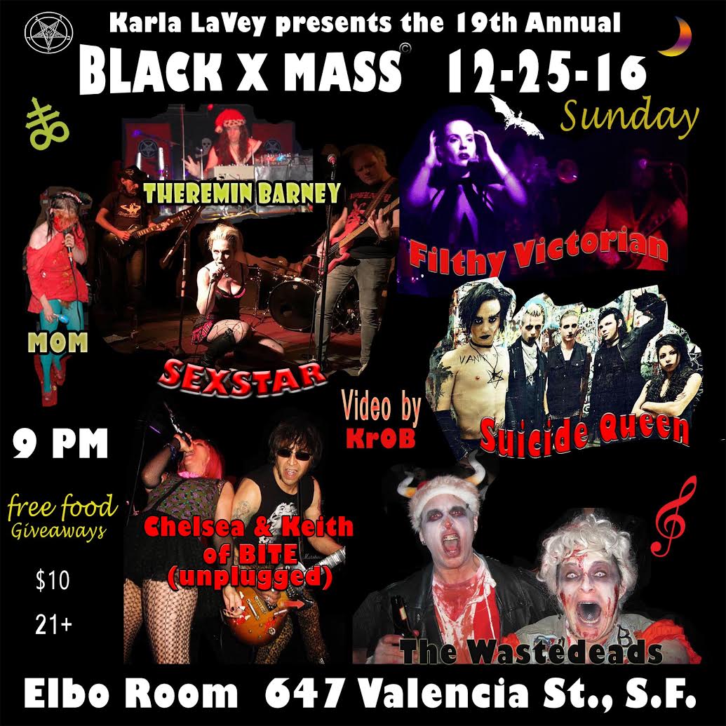 If you’re in San Francisco on Christmas night don’t miss the 19th Annual Black X Mass, an evening of non-stop music and entertainment. This event is open to the public. Everyone is invited to come and have a devilishly good time. It’s a show. It’s a party. It’s fun for everyone! (Over 21, that is.) There will be free food and giveaways.